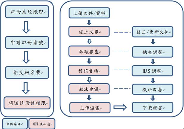 MUI以線上(Cerol)系統進行文件審查,可快速取得線上回應;認證申辦流程為:申請帳號密碼、申請註冊碼、繳費開通帳號、上傳HAS手冊、產品及原料等相關文件、預審、訪廠、HAS審查、Fatwa Commission教法審查,繳交領證費用、最後核發證書。 |
